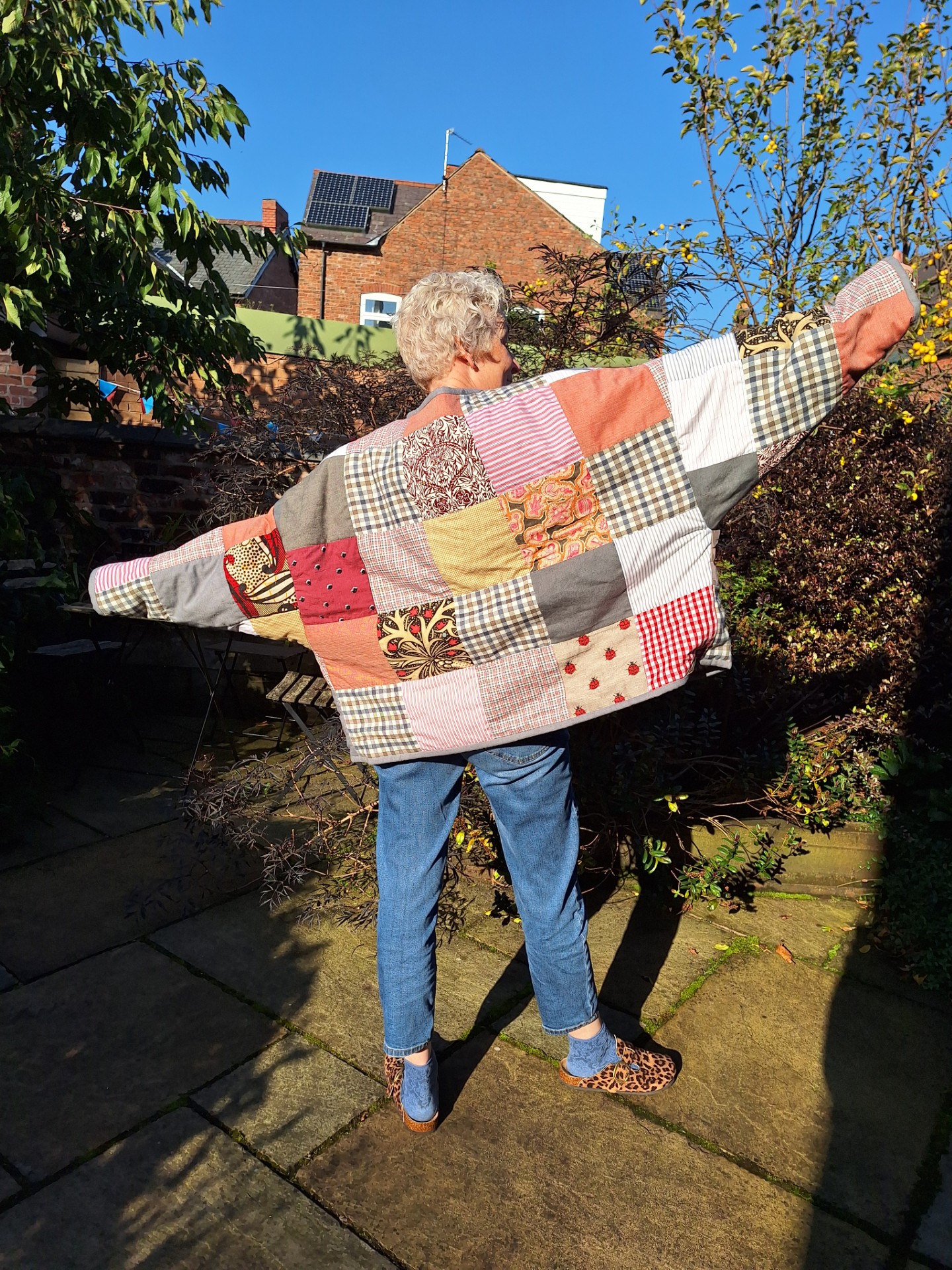 If you wish me to make you a quilt from cherished old clothes, or from your own special stash of fabric, I can work with you to design a quilt to the size&style that fits you&your home. I can also stitch a quilt (-floor cushion-tent-laptop cover-you decide) as a special gift to celebrate a significant event, or I can make a personalised quilt just for you or for a loved one.