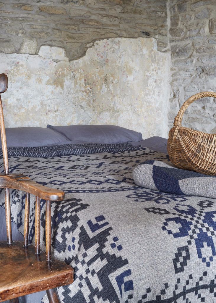Taking inspiration from traditional Fair Isle patterns and knitted at the home of English knitting in Leicester from British wool, my woollen blankets are as distinctive as they are beautiful. These blankets are comfortably weighty and great to cosy up in, just like my quilts. And just like my quilts, my blankets fit a double bed comfortably at 225cm by 145cm.