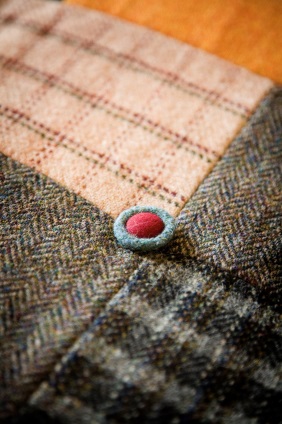 Lisa sewing a bespoke Harris Tweed patchwork quilt