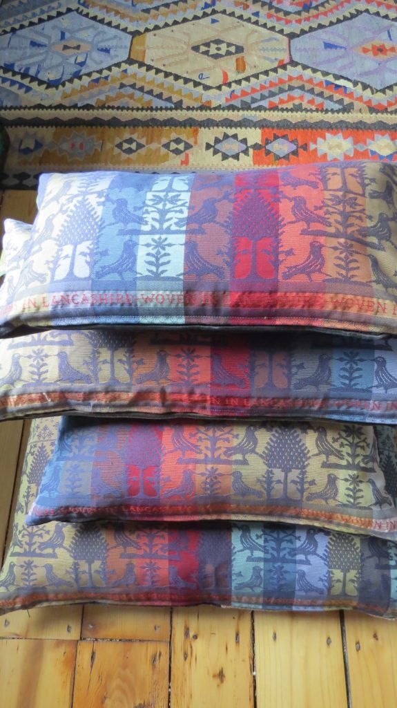 That was the week that GNCCF & Handmade in Kew were on, where Lou Gardiner embroidery and Gillies Jones glassware showing at these shows were also spotted on sale at Blackwell. I had the opportunity to visit the inspirational Blackwell, an arts&crafts house at the weekend as I was teaching a P&Q workshop. Whilst enjoying reading the Sundays, I spotted Annabel Perrin featured in The Sunday Times style Home (Annabel’s Hemlock print provides some added zing in my Brights Harris Tweed quilt) And excitedly my NEW knitted blankets were delivered on Sunday evening.