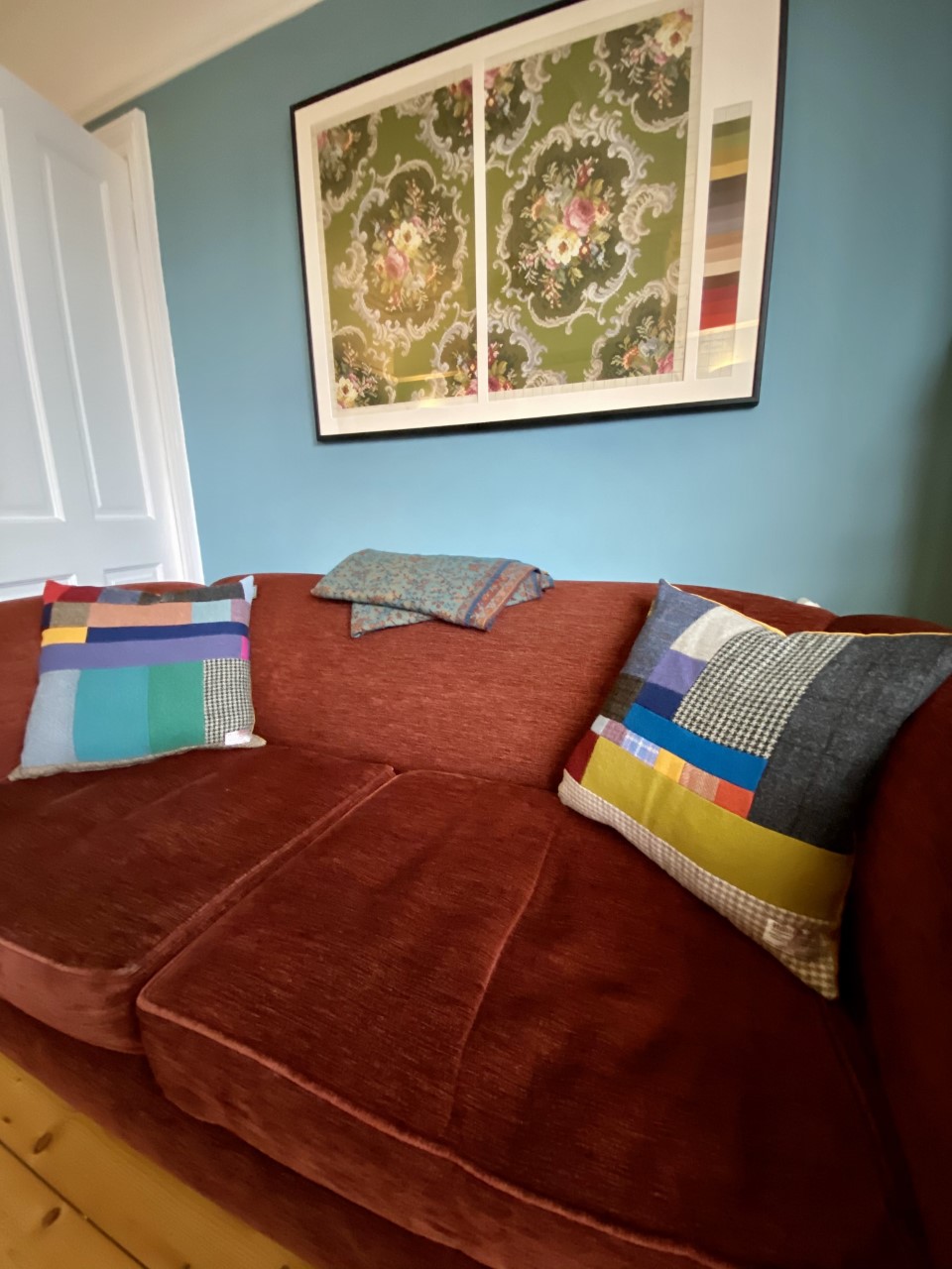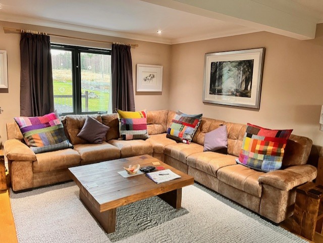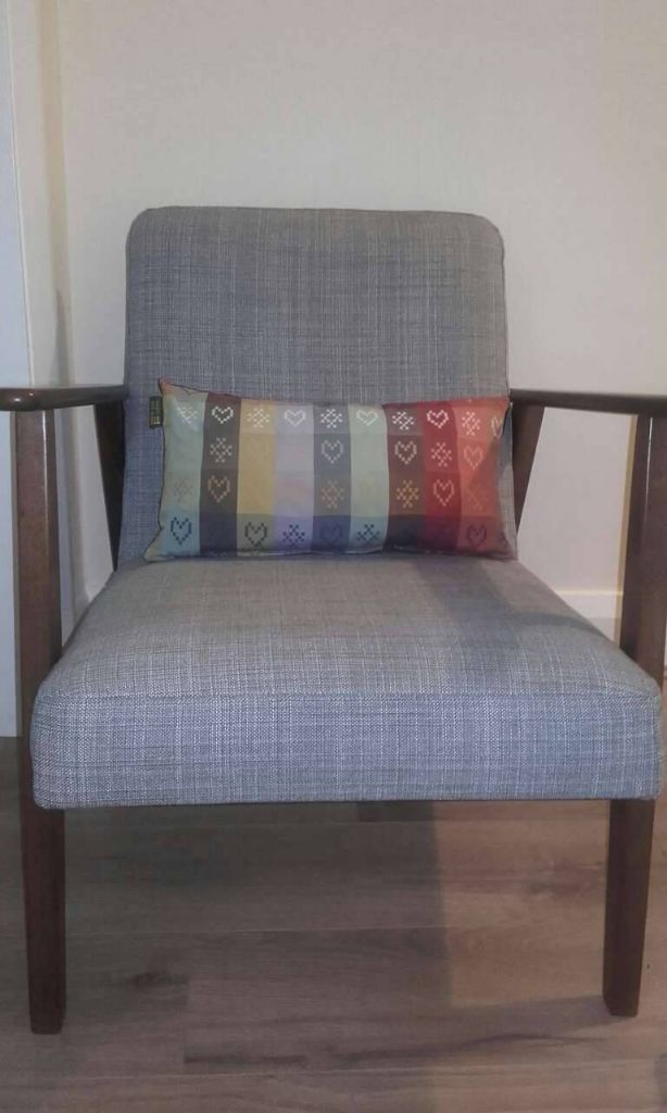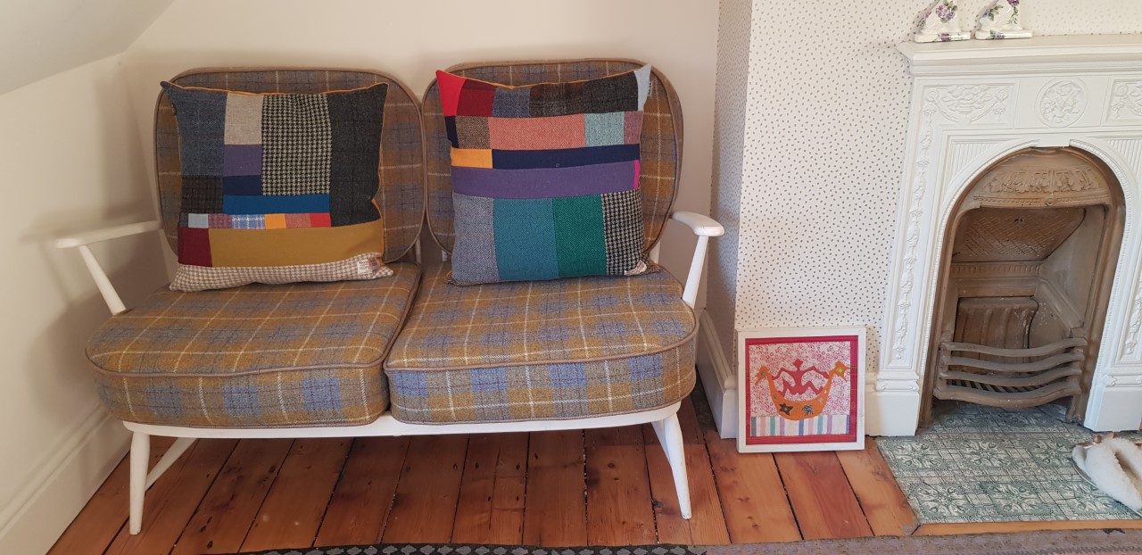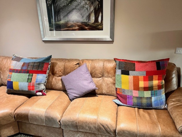 From Barbara January 2024; Hi Lisa-I saw you at Mcr Art Gallery last December and said I’d be looking for cushions when my living room was decorated. The day came and thank you for letting me bob round again to look at your HT cushion stock. I think Barbara’s HT cushion choice looks just right too;