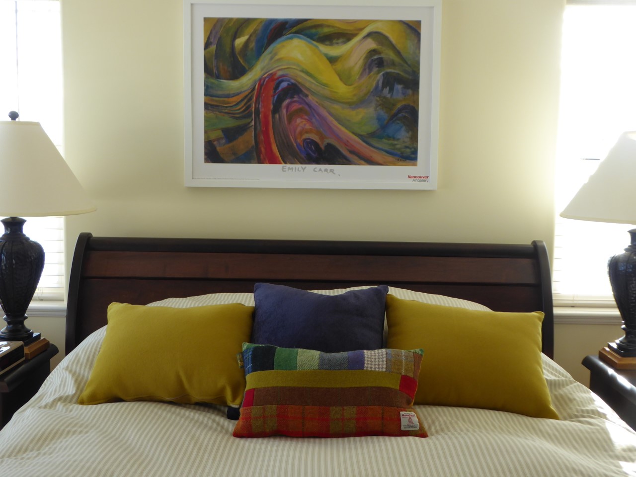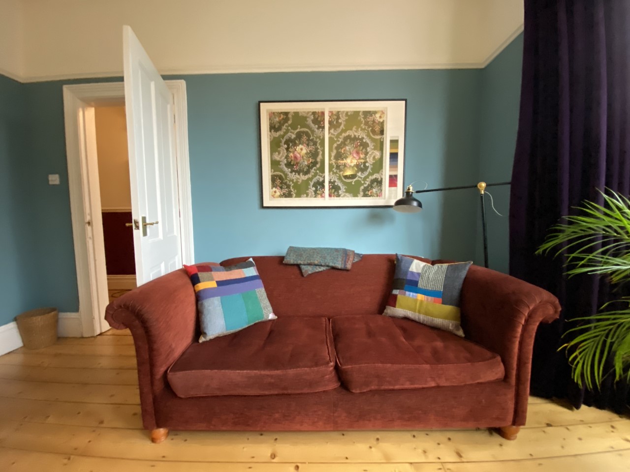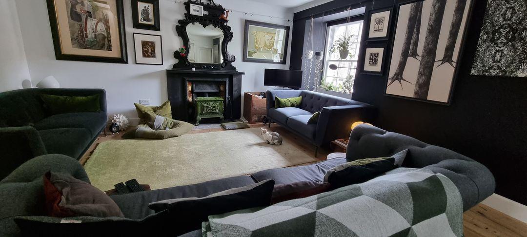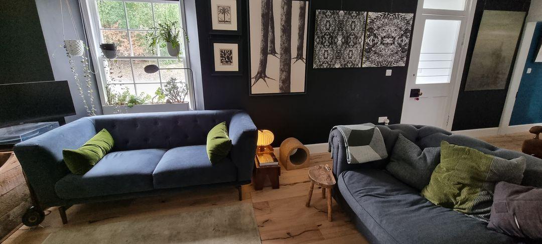 From Barbara January 2024; Hi Lisa-I saw you at Mcr Art Gallery last December and said I’d be looking for cushions when my living room was decorated. The day came and thank you for letting me bob round again to look at your HT cushion stock. I think Barbara’s HT cushion choice looks just right too;