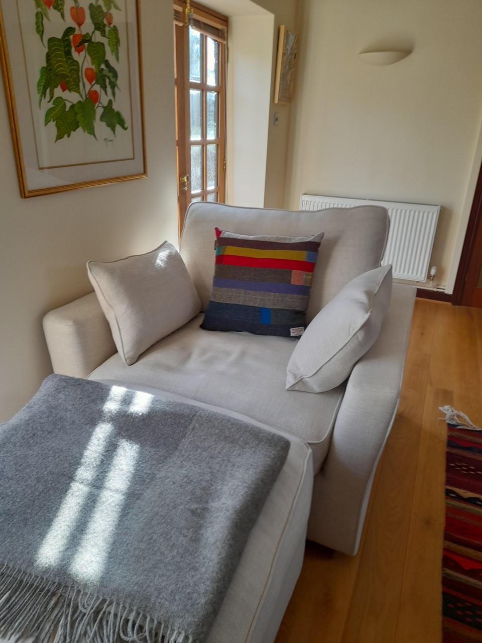 From Marianne April 22; Just loving our new blanket from Lisa, the geometric pattern & colour fits our space so well, and it’s so nice and warm, perfect for snuggling up and relaxing in the evening
